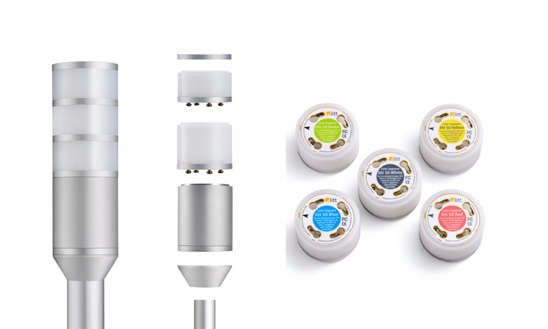 Con Litt, se pueden montar fácilmente hasta cinco segmentos de LED uno encima del otro, sin necesidad de herramientas. Los segmentos de luz están disponibles en rojo, verde, amarillo, blanco y azul y vienen en dos alturas: 41 mm (1.61 pulgadas) y 27 mm (1.1 pulgadas). Las alturas y los colores se pueden combinar de cualquier manera, ya que cada color tiene una entrada de control dedicada.